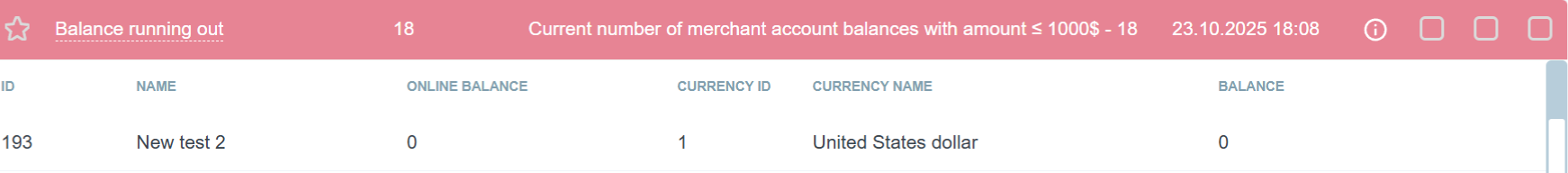 This alert is used if necessary to receive notification when the Live balance is equal or under 1000$.
